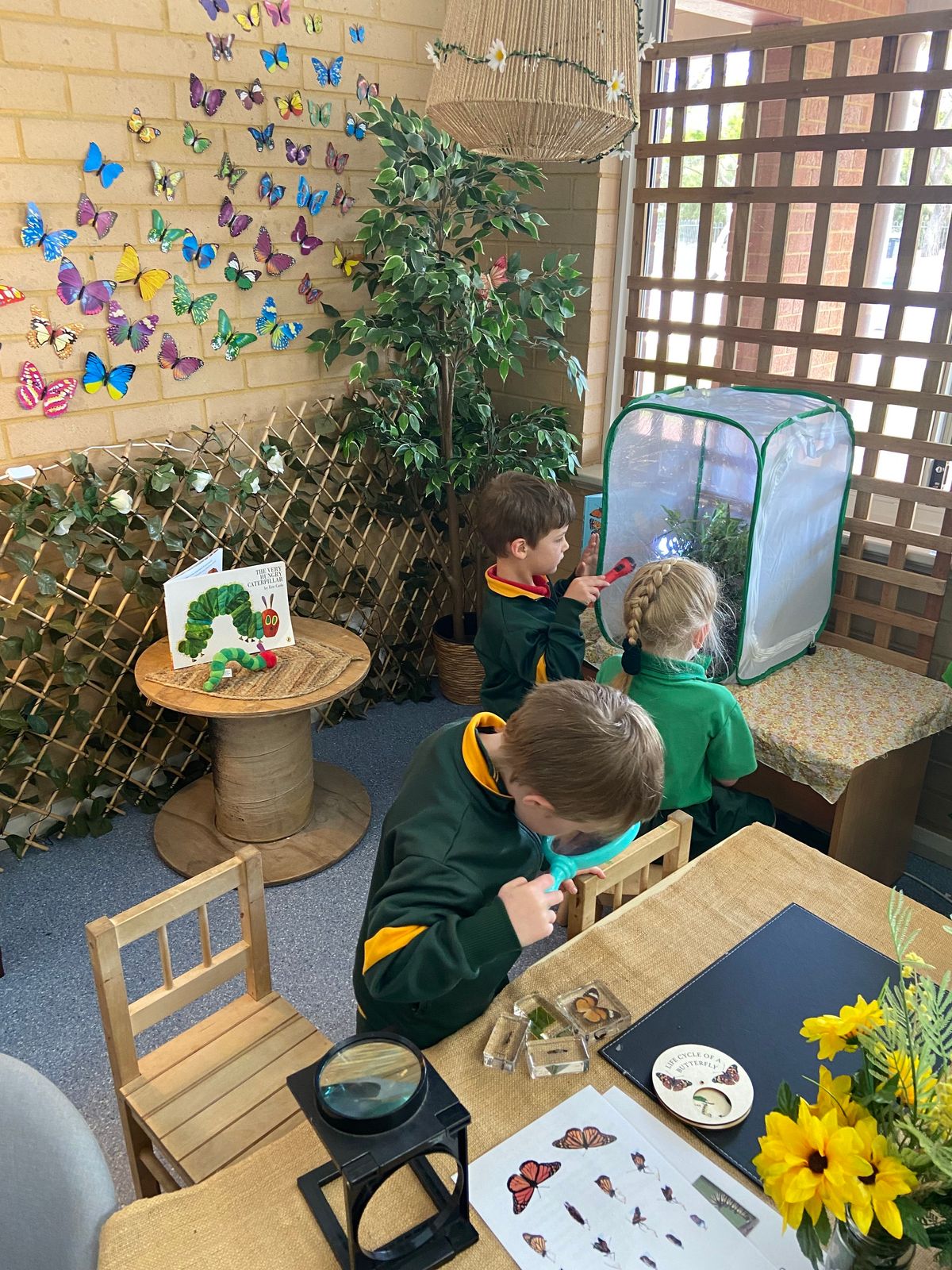 They have been very excited to watch eggs hatch, the caterpillars eat a lot of leaves (just like The Very Hungry Caterpillar) and to witness a beautiful butterfly emerge from its chrysalis. It was a bittersweet moment for all when we released 'Sheila' the butterfly into our bush area.