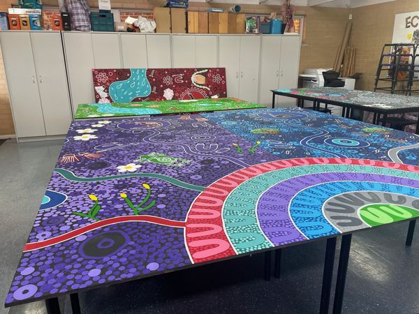 Over the past fortnight, the students have had the opportunity to work in small groups with Noongar Artist, Bianca Willder, contributing to the painting of the amazing Noongar Bonar mural, which depicts the six seasons and our House Group mascots. It is almost finished and ready to be mounted on the external wall of the Year 1 classroom, where it will be visible to the whole school and add vibrancy to our campus.