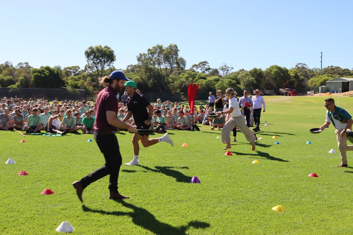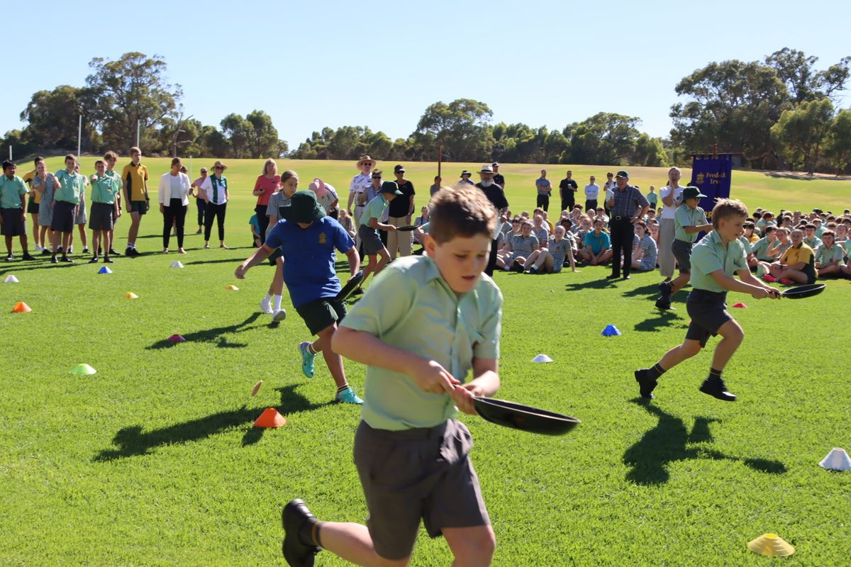 School Chaplain, Canon James Tabor, organised the pancake flip races with points being awarded for fastest time and most flips per run.