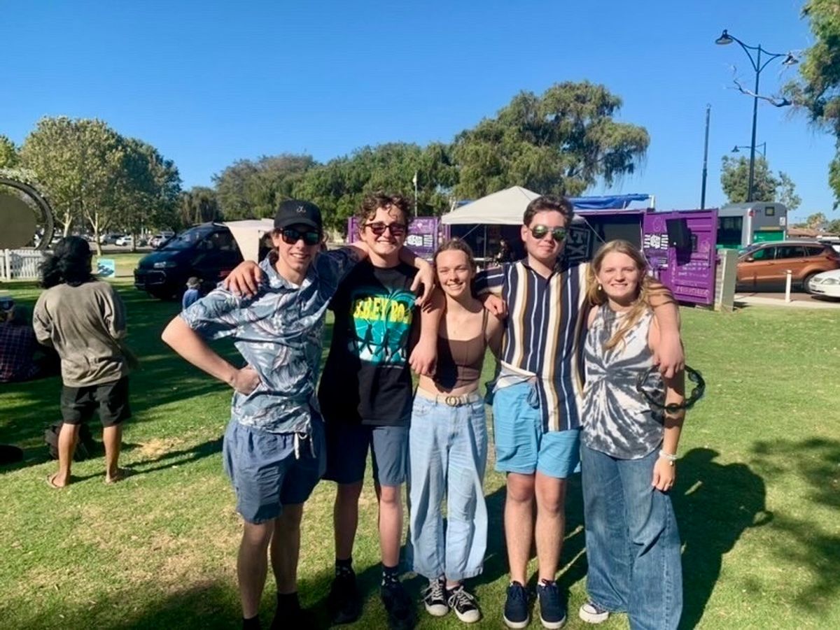 Over the summer school holidays, five Frederick Irwin Anglican School Year 11 students (Sam Rutherfurd, Emily Tamplin, Lachlan Dods, Hudson Merema and Amy Latham) performed with their band at an event called ‘Beat Box’, on the Mandurah Foreshore, as well as performing at the Mandurah Music Club.