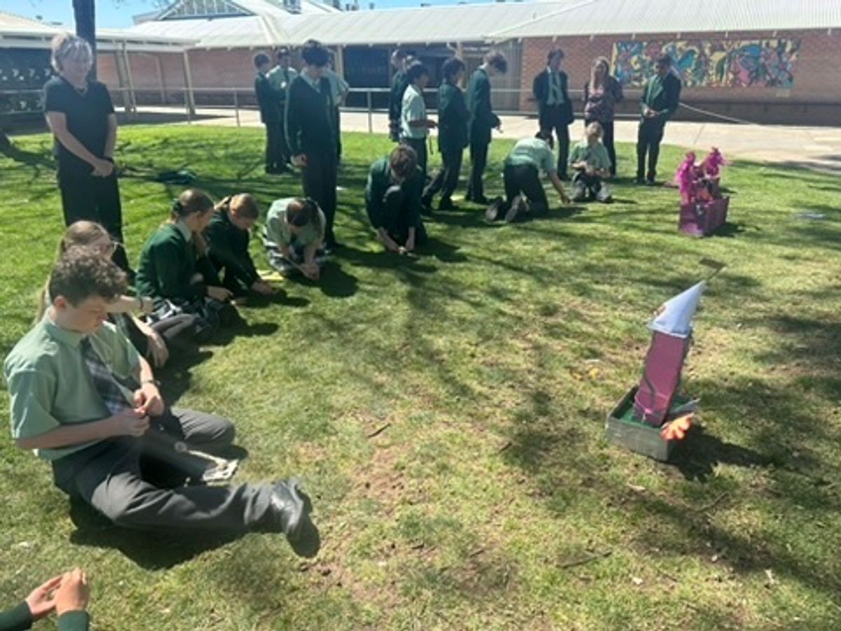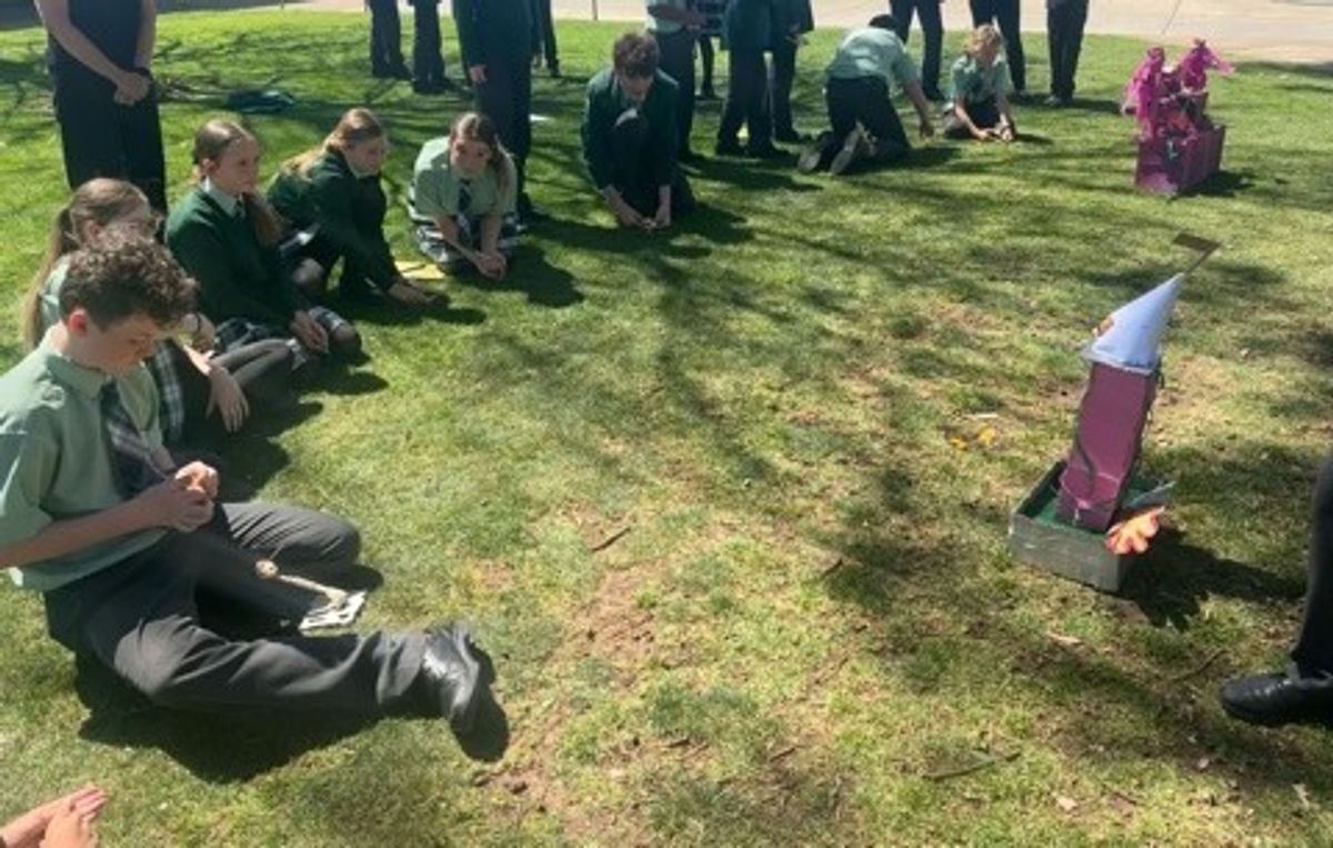 Our Year 7 students collaborated in teams to design and build various types of catapults, testing their effectiveness through a siege on the Castle of Scramble to rescue Princess Nowhere from the villain Egg Fu.